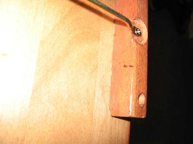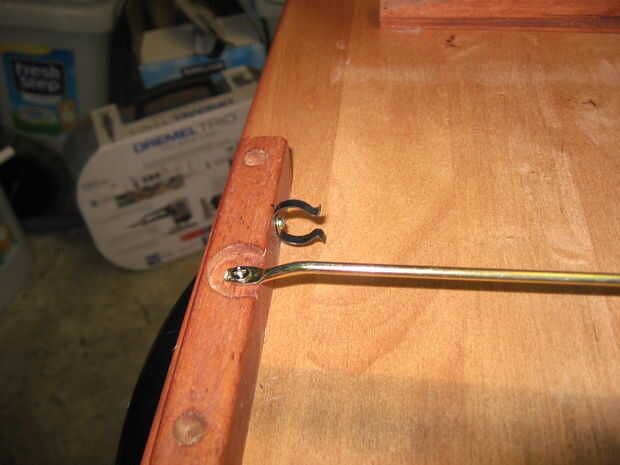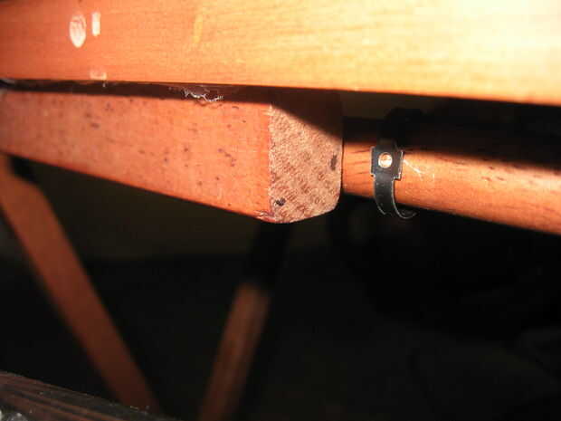 mi esposa necesita un resto del pie para su escritorio en el trabajo. Miré alrededor de la casa y encontró una vieja mesa bandeja plegable que hace el truco. Uso de herramientas de mano simple y unos sujetadores que encontré alrededor de la casa, a