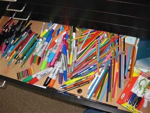 Lápices y marcadores en todas partes.