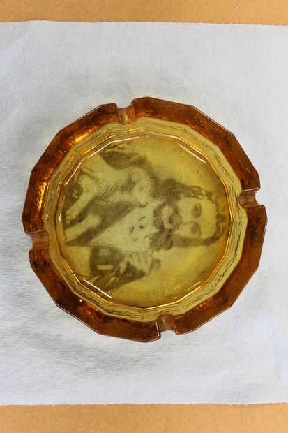 7) después de ejecutar varias pasadas sobre el láser de Techshop Detroit Retire la bandeja de ceniza, aplican su elección de pintura o vidrio esmalte, limpian el exceso de pintura o esmalte. usted debe dejarse con un cenicero de colores hombre barbudo.