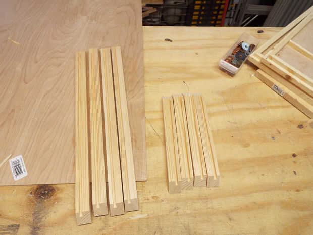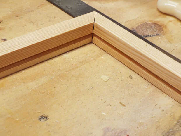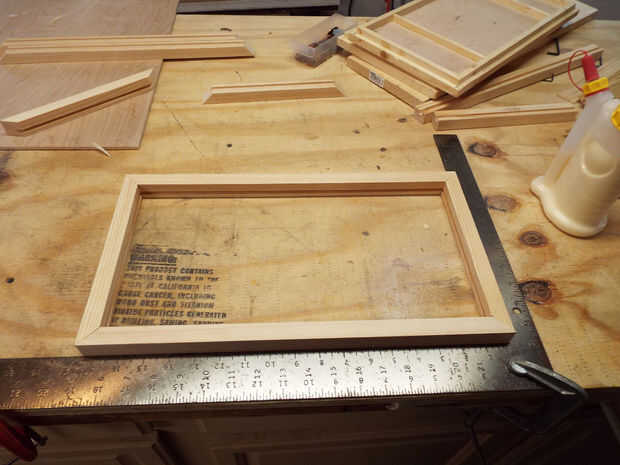 Cuando termine de cortar todas las 8 piezas puede emparejar 2 largas y 2 cortas para hacer dos cajas de rectángulo. Para ayudar a alinear las cajas, sujeta a mi plaza de encuadre a mi banco de trabajo. Con suerte o habilidad pura tienes un cuadro perfecto. Mina fue lo suficientemente bueno! meh!