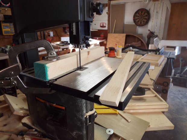 Para estos separadores en que sólo usé los residuos de cuando cortamos el 1 tiras al principio. Buscamos para obtener nuestros espaciadores de 1/4 de ancho x 1/2 en altura. En mi mesa de Sierra de cinta, puse una cerca con un bloque de madera (mina no vienen con una valla de fábrica) 1/4 en la hoja. Después de ejecutar lo suficiente de los desechos a través de obtener sobre 10 espaciadores, pasé la valla a ser 1/2 en la hoja y las piezas otra vez. Quiero señalar que, en mi experiencia, es mejor intentar ejecutar el lado plano de la madera de la cerca porque (para mí al menos) la Sierra de cinta corta un poco loco. También después de todas las piezas al tamaño que algunas de lijado es necesaria para obtener la sierra marca. Medir y cortar a los espaciadores a 8 pulgadas de largo. Una vez más es mejor cortarlas un poco más largo y arena a su tamaño. Para este tamaño e incluso el lijado, sostuve mi lijadora boca abajo, ejecutando los extremos en la lijadora hasta que encajen.