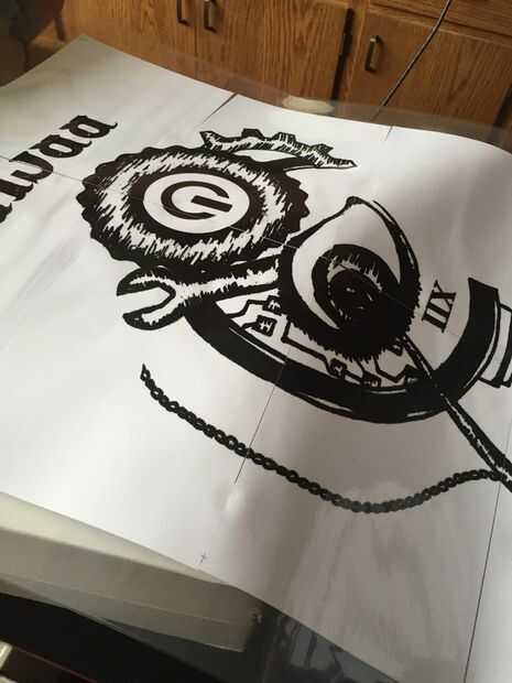 Tenemos nuestro laminado así podríamos usar otra vez después de que habíamos rocía la pintura en él y la bandera y de esta manera salió mucho más fácil