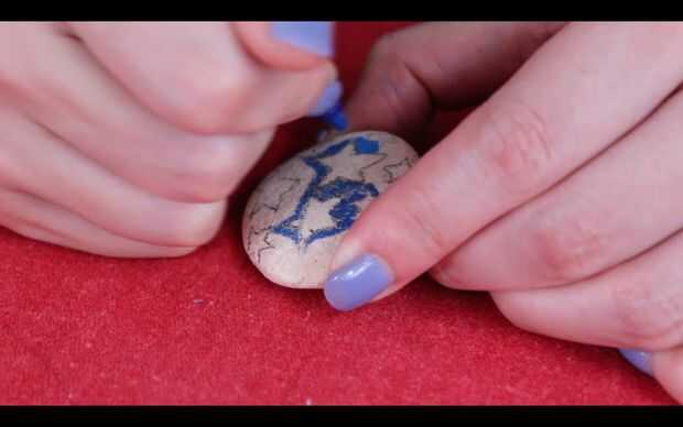 Usando el marcador permanente azul, color alrededor de las estrellas sobre los guijarros.