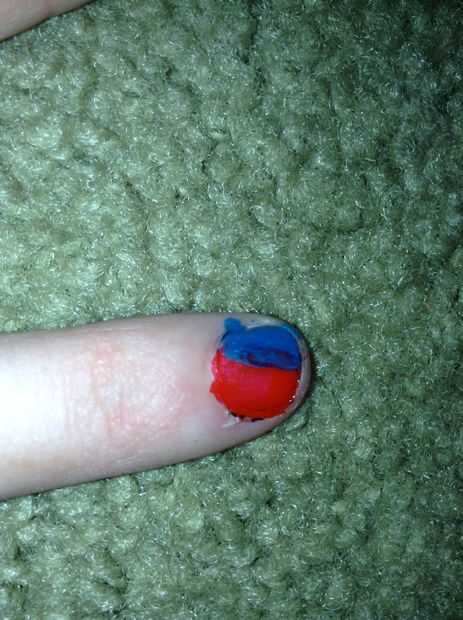 te necesita:Cepillo del arte del clavoAcetonaPulimento blanco (yo usé Sally Hansen Xtreme usar blanco en)Esmalte azul (yo usé ALDO mar usted en Ibiza)Rojo polaco (yo usé China Glaze Hey Sailor!)Claro Topcoat (yo usé Seche Vite)Los pasos:1. pintar las