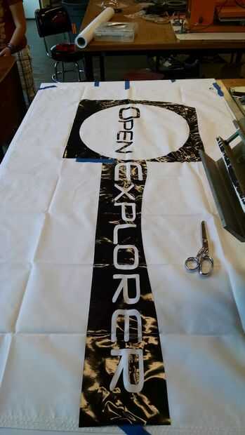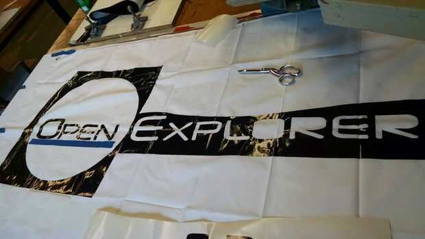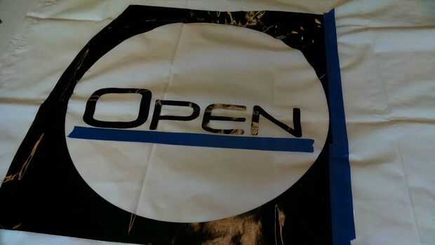Revisa las imágenes para el diseño. Aviso no guardo todo el material de vinilo alrededor de las letras y el logotipo, esto habría hecho muy difícil de aplicar a la bandera sin pegarse todo sobre sí mismo... que es una situación triste.