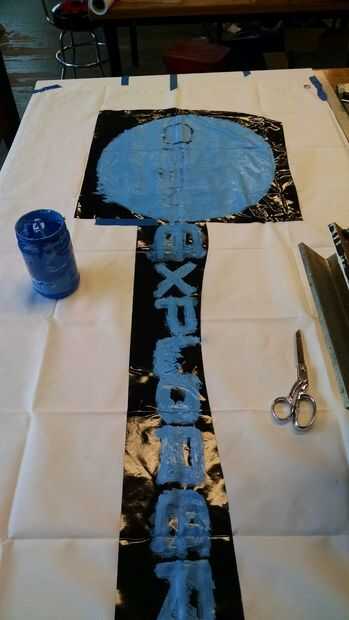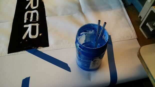 Luego pintar el logo! El mejor trabajo de pintura es uniforme, trazos cortos con menos pintura para entrar en la tela pero no deja líneas o grupos. Me gustaria poder ver la textura de la tela por debajo.