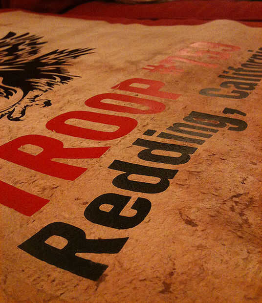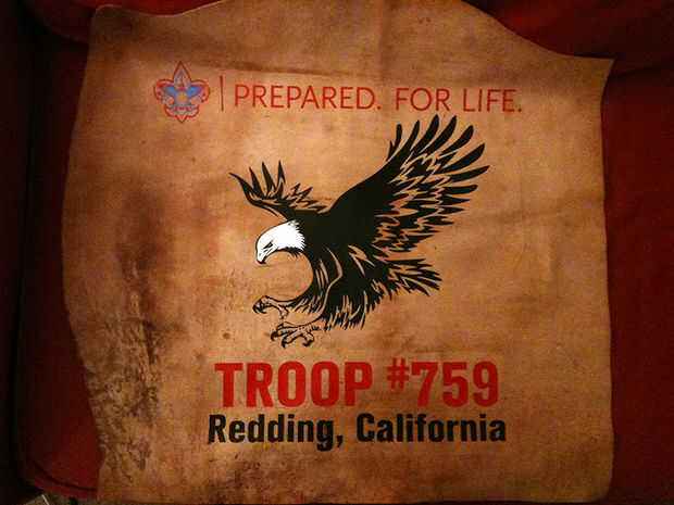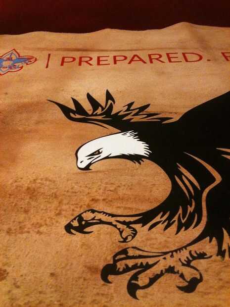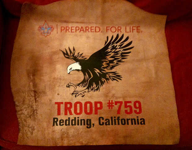 ►me estoy incluyendo un montón de fotos de la bandera de cuero después de que los gráficos fueron agregados. Tenga en cuenta que no se recorte aún ni se atacó a la estructura de madera.