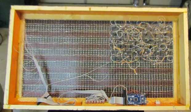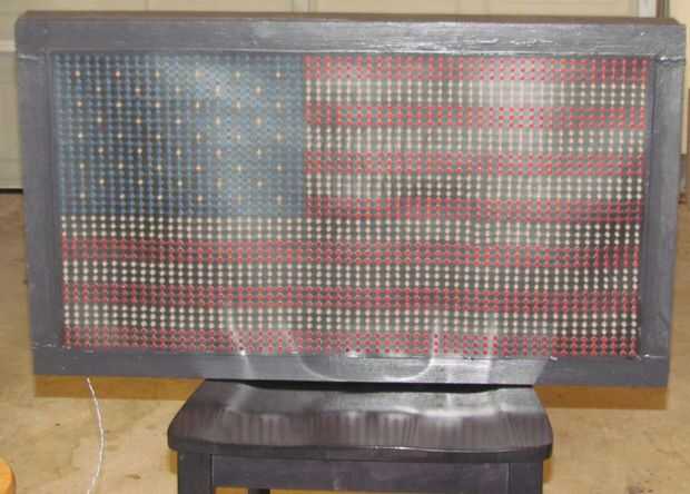 Una simple caja de madera fue construida por el tablero de LED, luego pintada de negro como se muestra. sí, sé el embalaje final se podría haber hecho un poco mejor, pero esto es lo mejor que pude subir con, lo cierto es que trabajó y está protegido de los elementos cuando se coloca en el exterior para la exhibición.