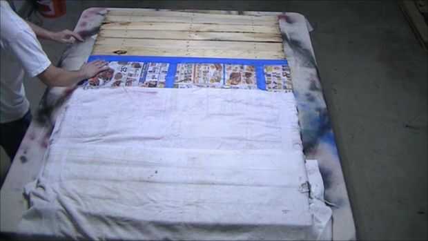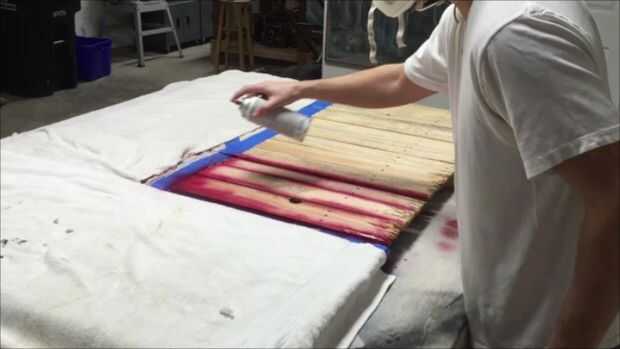 La siguiente fase fue el proceso de pintura. Tomé una sección en un momento y había enmascarado de las zonas y pintado. La una área difícil era la raya blanca porque realmente usar tres colores diferentes para lograr una mirada variada. Empiezo con "blanco brillante" y "almendra" y por último "marfil" usando estos tres colores agrega mucha profundidad a una raya blanca si no. Lo bueno de madera y palets de madera en general es absorber la pintura diferentemente dependiendo del tipo de madera y el patrón del grano. Así obtienes un montón de variación natural sin mucho esfuerzo que es bueno si eso es lo que vas. Si quieres un aspecto más uniforme entonces recomendaría que usted arena los tablones y cartilla todos ellos esto le dará un aspecto más coherente. Pero para este proyecto me gustó el aspecto variado de la madera.