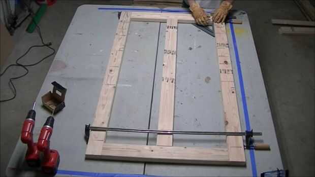 A continuación empecé a trabajar en el marco que los tablones de madera de plataforma fijarse demasiado. Dejé de 2x4s porque finalmente la bandera se iluminará nuevamente con una tira de luces LED y necesitaba la profundidad de la 2 x 4 para tener suficiente espacio para montar el transformador para luces entre la bandera y la pared donde se colgará. Las dimensiones eran 34 x 57 pulgadas. Utilicé tornillos para unir temporalmente el marco juntos como tengo que tomar aparte más adelante. También lugar pinté diversas áreas del marco negro, que estas áreas podrían ser visibles una vez montado debido a las rendijas entre las tablas.