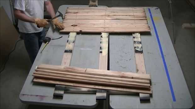 Ahora llegó el momento de colocar todos los tablones con pegamento y clavos. Esto es eran previamente tener numeradas las tablas viene en muy práctica.