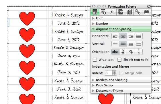 Para agregar texto, simplemente haga clic en la celda y comience a escribir. Este da formato habitación para dos líneas de texto en la parte delantera y trasera. Sugiero establecer las celdas alineación centrada para una apariencia limpia.