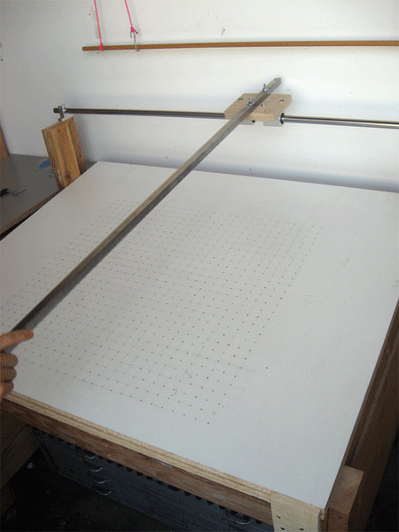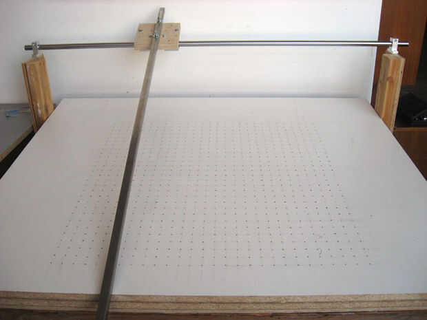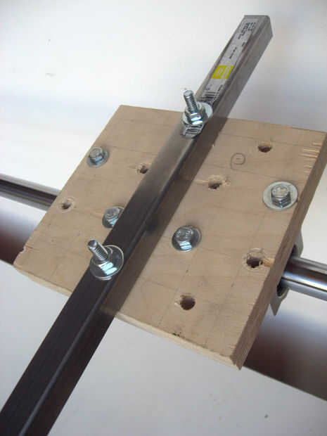 El brazo luego se fija con pernos a la plataforma de madera contrachapada en un ángulo de 90 grados en relación con el eje.