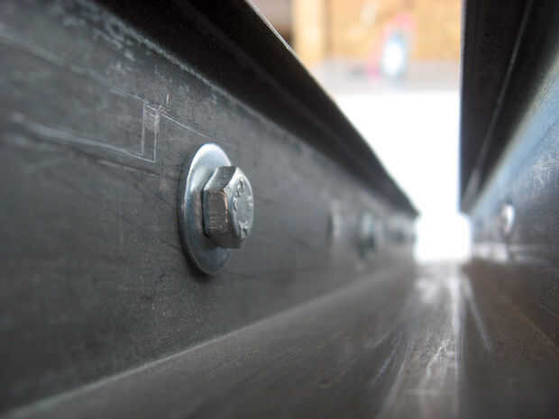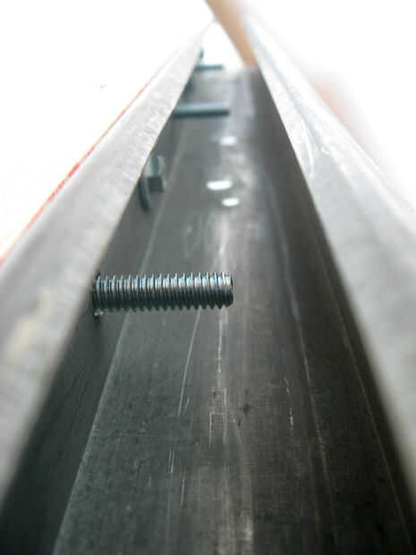 - foto 7, 8 y 9: una tira de madera se lleva a cabo en el canal del puntal con pernos