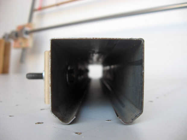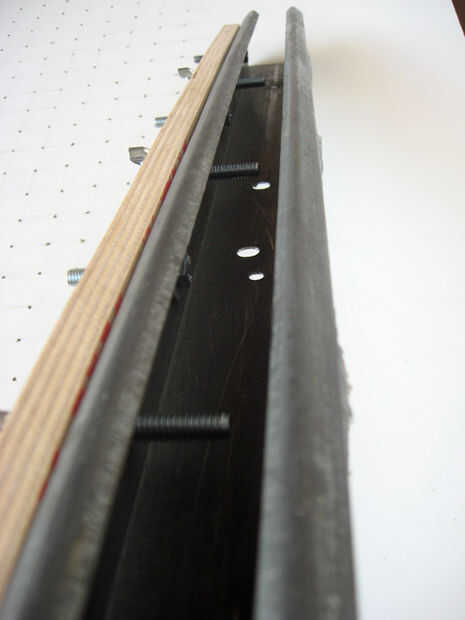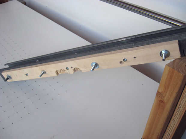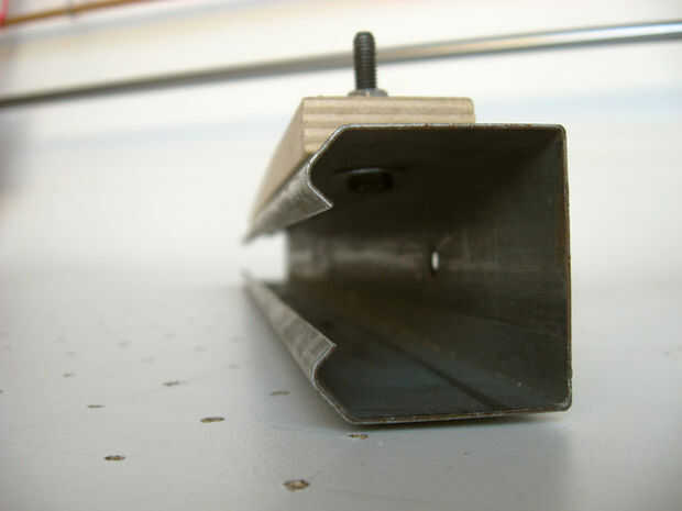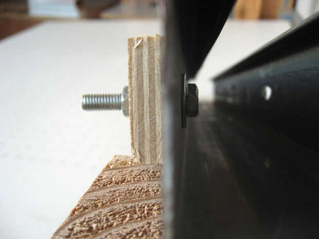 Aquí es donde comienza algunos ingeniería DIY realmente al azar. Encontré un trozo de canal del sólido puntal para que puesto otra pieza de desecho 1/2" madera multilaminada de abedul que actuará como un mecanismo de apernado para sujetar la rasqueta en posición.