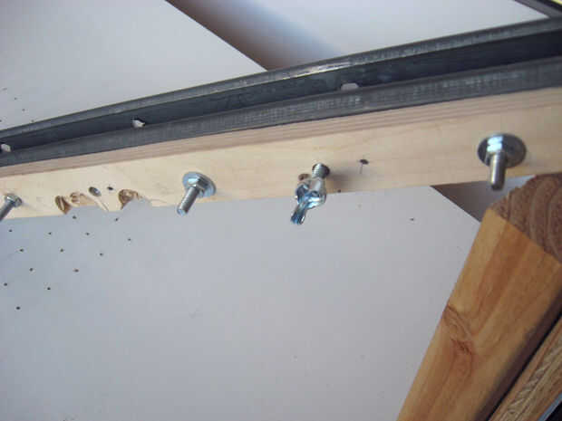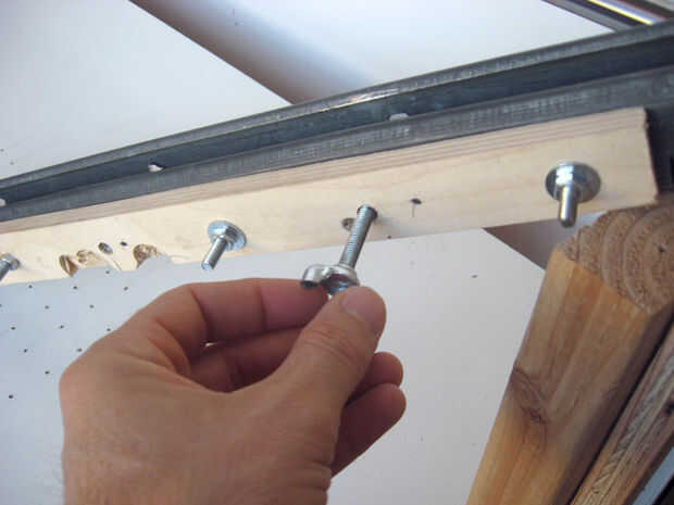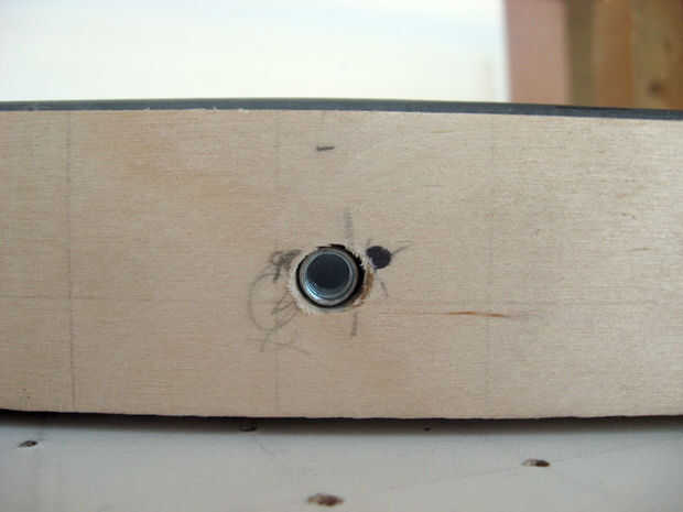 - Foto 4: un primer plano de la tuerca en t desde el exterior de la madera contrachapada