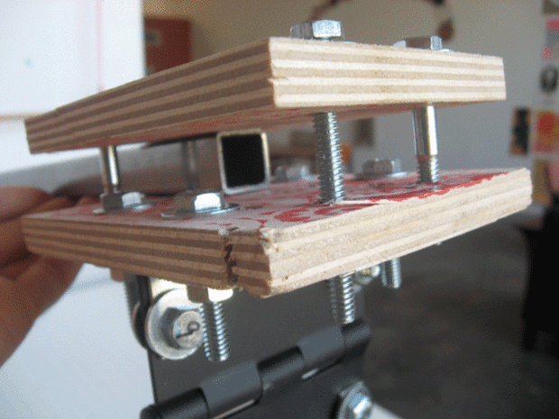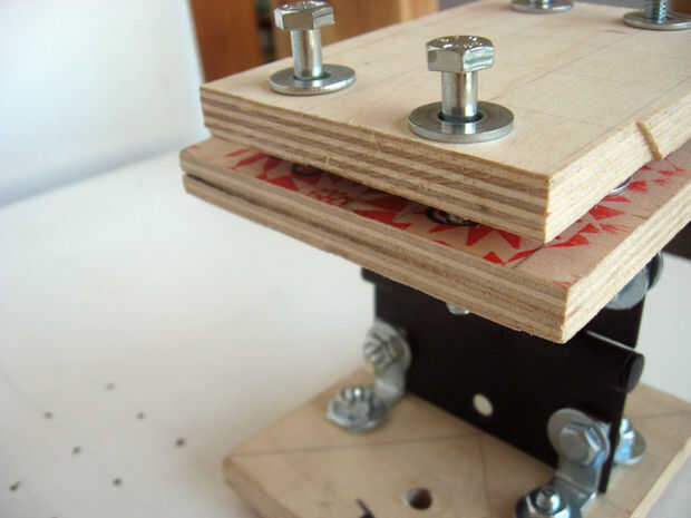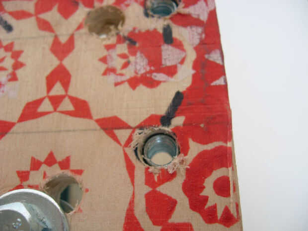 primero reemplacé las cabezas de cuero de estos bongos baratos con cabezas de película de rayos x, que era una mejora.   (ver: Desafortunadamente, el hardware de la tensión se rompió en uno de los tambores recientemente, así que reemplacé la cabeza c