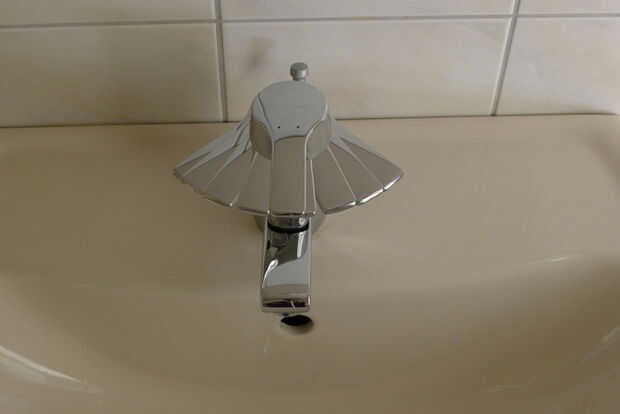 El siguiente paso muestra que es posible fijar la palanca en una posición diferente, trenzado 45° hacia la derecha. Al hacerlo, la posición de la manija de palanca proporcionará agua fría solamente.