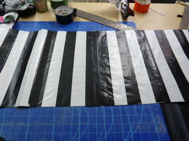Nada realmente como ciencia del cohete, toque sólo pequeña. He encontrado cinta pato (o cinta cinta/plata si te gusta) como un buen reemplazo para cinta. Puede ripear al ancho requerido y aplicar fácilmente a desenvolver poco a poco, pegando para lla