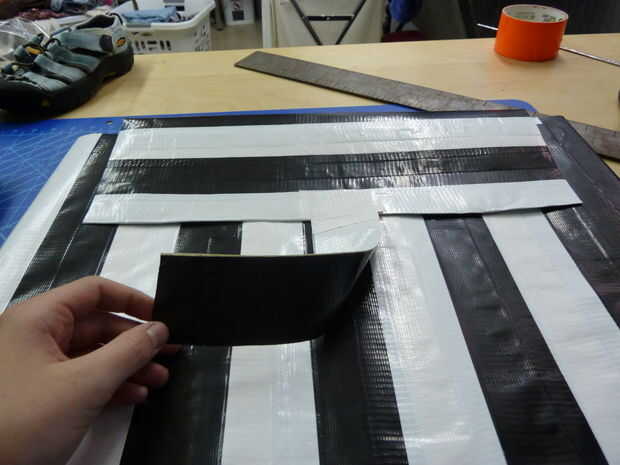 Nada realmente como ciencia del cohete, toque sólo pequeña. He encontrado cinta pato (o cinta cinta/plata si te gusta) como un buen reemplazo para cinta. Puede ripear al ancho requerido y aplicar fácilmente a desenvolver poco a poco, pegando para lla