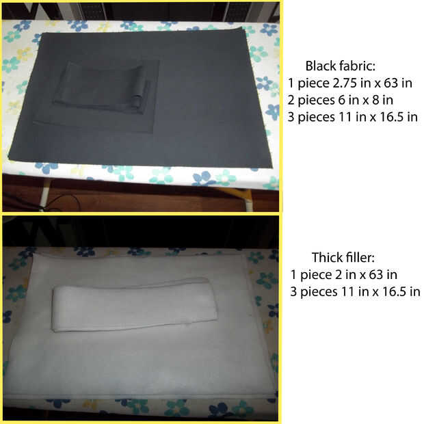 - Con su interfaz corta 1 pieza 2 pulg x 63 pulg (para la correa) y 3 piezas 11 pulg. x 16,5 pulgadas (para el frente, parte posterior y solapa).