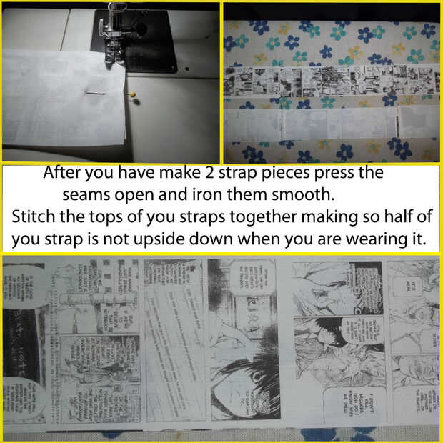 5. coser la parte superior de que las correas juntos haciendo así que la mitad de correa no es boca abajo cuando usted está usando. Ahora debe tener una pieza de tela larga impresa medir 2,75 pulg x 63 en.
