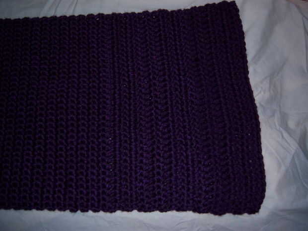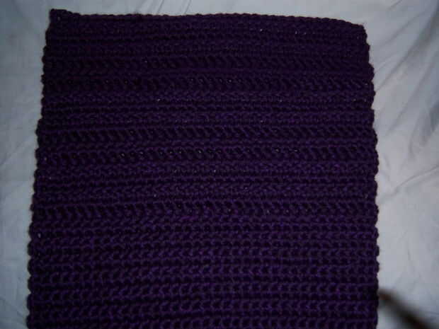 Seguir el cuerpo de la bolsa de la aleta esta vez con puntada de Crochet doble Se hacen dos filas con la DC Siguiente fila es SC Repetir la hilera 2 DC con 1 fila SC hasta la solapa de la bolsa es de aproximadamente 9 pulgadas de largo Terminar con una hilera de SC, acabar y tejer en los extremos.