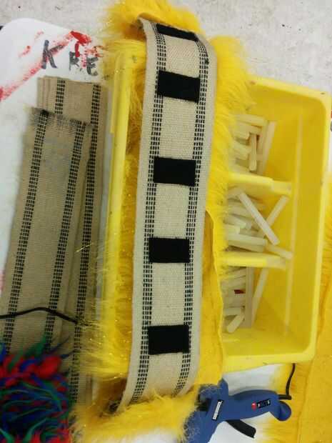 En lugar de engrapar los bloques de bandolera en la correa delantera, poner las tiras de velcro de la cinta y una tira de velcro en cada bloque.