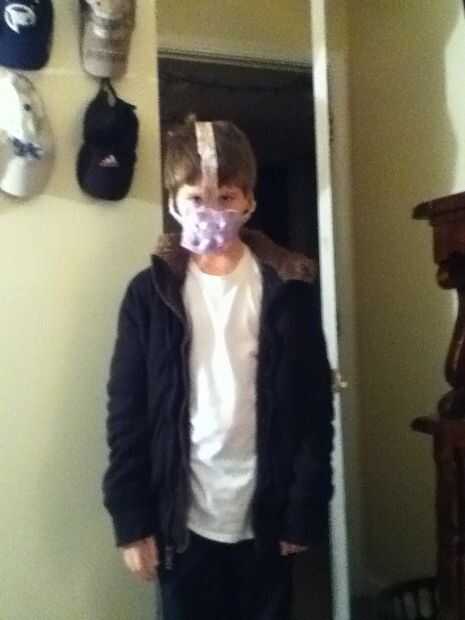 mi hijo de 12 años lleva un traje de Cad Bane. Él y trabajaron en él. Para hacer la máscara, se utilizó la técnica de papel maché para cubrir un poco más de la mitad de un globo. Después ponemos en un total de 5 capas (dejando que cada capa se se