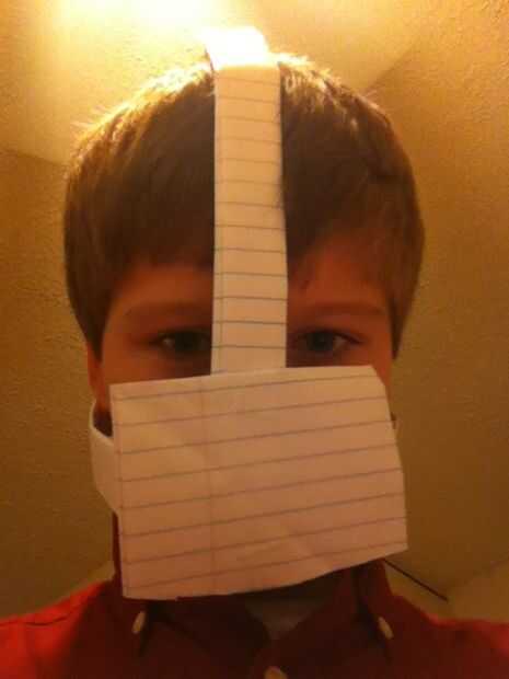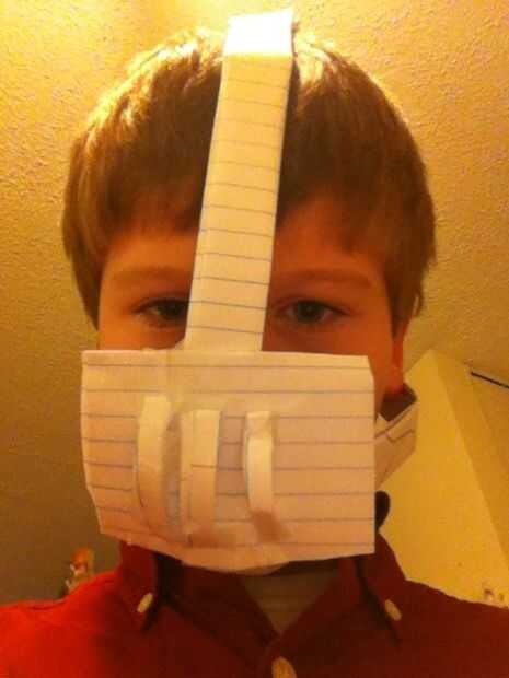 mi hijo de 12 años lleva un traje de Cad Bane.   Él y trabajaron en él.  Para hacer la máscara, se utilizó la técnica de papel maché para cubrir un poco más de la mitad de un globo.  Después ponemos en un total de 5 capas (dejando que cada capa se se