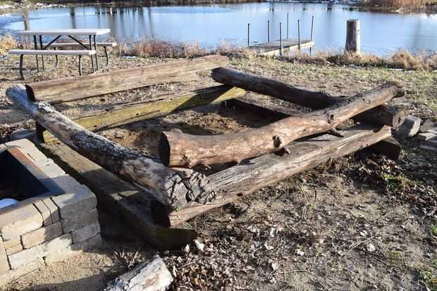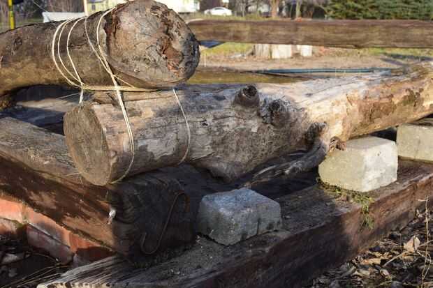 Para esta bañera de fácil de configurar y de derribar, decidimos utilizar una combinación de antiguos lazos del ferrocarril y troncos caídos que tenía que poner alrededor del marco. Es importante que el suelo debajo y verificación de instrumentos afilados que podría perforar la lona del grado.