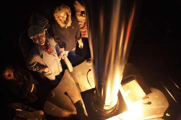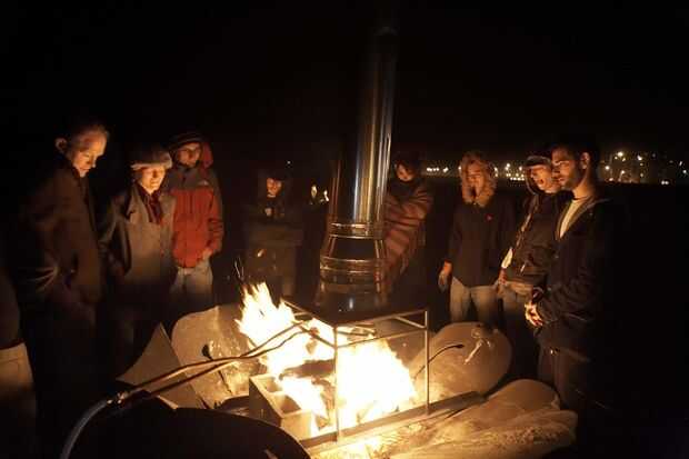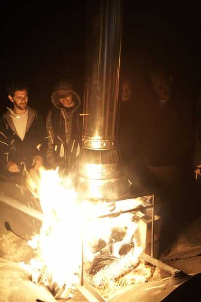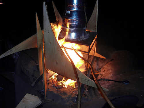 Tenga en cuenta que nuestro intercambiador habría funcionado mejor si tenía algunos parabrisas parciales en los lados del marco. Mucho del calor fue conseguir soplado hacia fuera debajo del intercambiador, por lo que nos gustaría añadir periódicamente hojas de madera contrachapada para bloquear algunos de viento. La madera contrachapada continuamente quemar, por supuesto, por lo que fue un poco de una tarea a seguir añadiendo más.