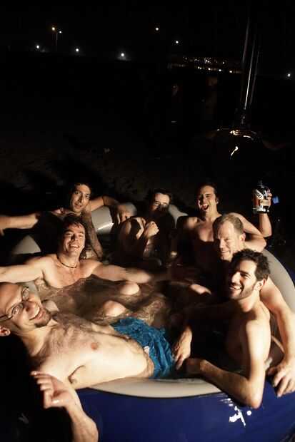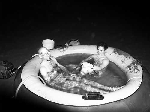leña una bañera de hidromasajePerfecto para 6-10 amigos.  Puede llevarse en la parte trasera de una camioneta pequeña.  Dura aproximadamente 3 horas para levantarse a la temperatura y coste cerca de $650.Materiales-55 galones cierra barril de metal (