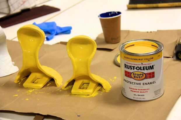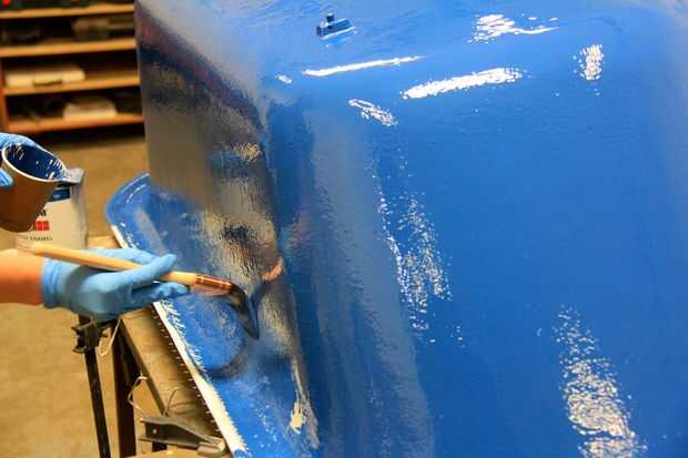 Pintar el exterior de la bañera suele ser sencillo.  Utilicé pinturas de esmalte base de Rustoleum y cepillos de alta calidad para obtener un buen brillante incluso capa.