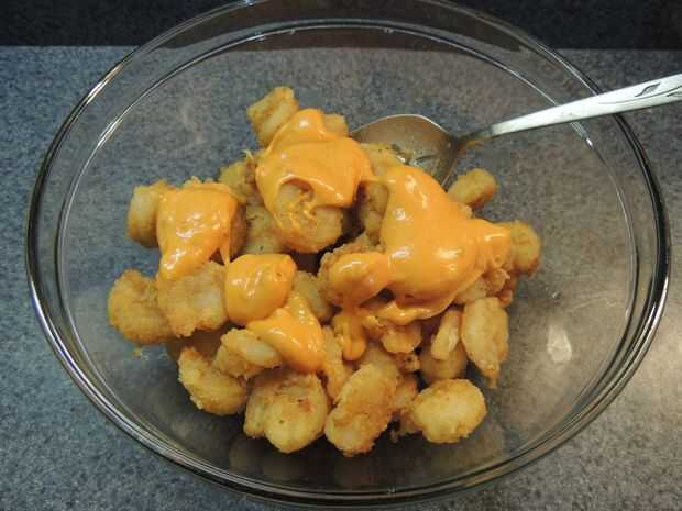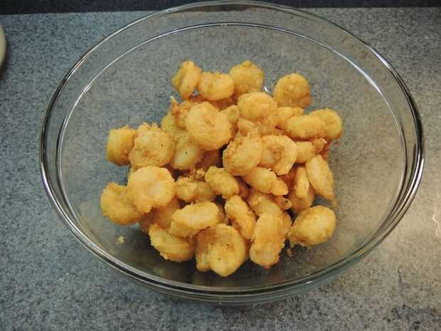 Poner el camarón refrigerado en un recipiente. Añadir la mitad de la salsa y mezclar. Si te gusta muy caldoso, añadir la salsa. PUNTA!: usted siempre puede agregar más, pero usted no puede sacar! Placa de los camarones y decore con semillas de sésamo y cebollín al gusto. ¡ DISFRUTE!