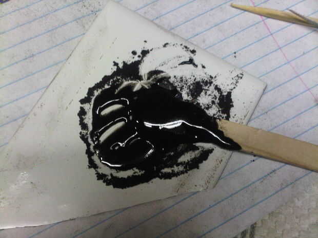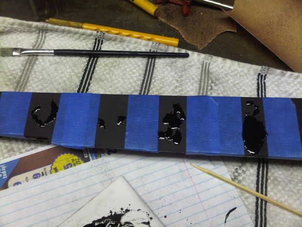 Durante el proceso de lijado sabía que tengo que hacer algún relleno superficial así cuando llegué al punto donde yo estaba produciendo polvo de ébano puro que estaba cuidado de salvar a algunos.  Esto se convierte en el agente colorante y engrosamiento del epoxi. Descubrí polvo de ébano produce un negro mejor que los tintes comerciales. ¿Quién sabía?