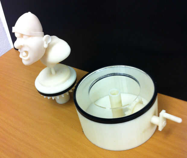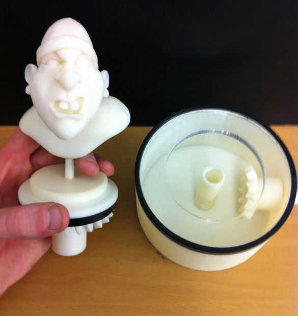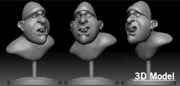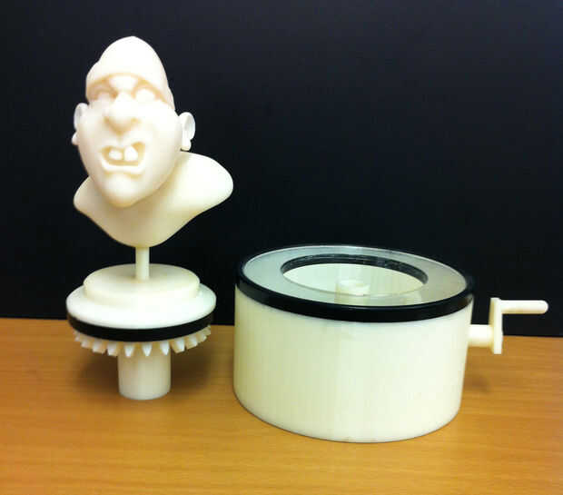 El 2 º paso era interpretar mi concepto del ladrón de banco en el diseño en zbrush de modelado 3D. Tuve que tener en cuenta que el resultado final de este proyecto iba a ser una maqueta de la placa giratoria así que añadido un soporte de la base para el modelo 3D del ladrón del Banco. Los engranajes cónicos, palanca y caja que encajona los engranajes fueron modelados en solidworks.