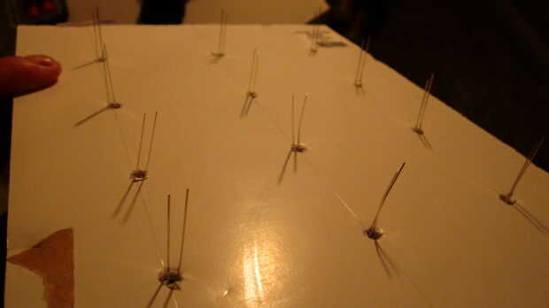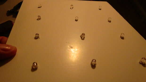 Diseño de una cuadrícula de 12 LED de igualmente espaciados. Aquí es donde que regla y matemáticas básicas viene muy bien. Los agujeros en los LEDs caber a través. Indicadores de lugar a través de orificios. Asegurar con pegamento caliente Usar más pegamento caliente en la parte superior los LEDs para difundir la luz.