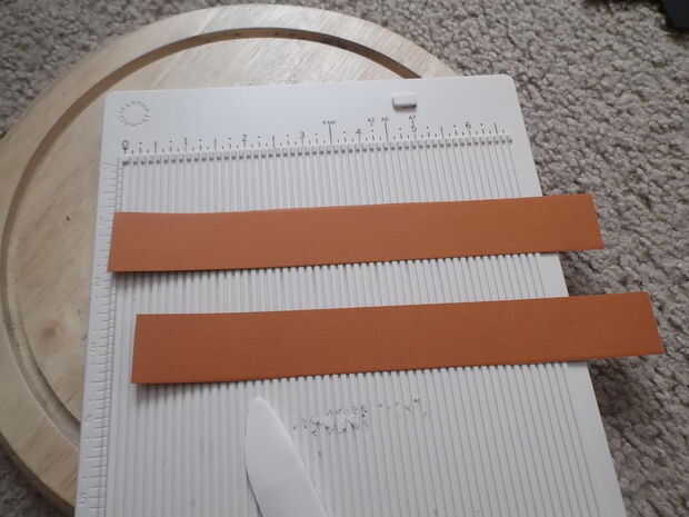 1 cortar las cartulinas con 2 pulgadas de ancho y les puntuación pliegue y frente de la Unión el edjes y pegar con el pegamento.