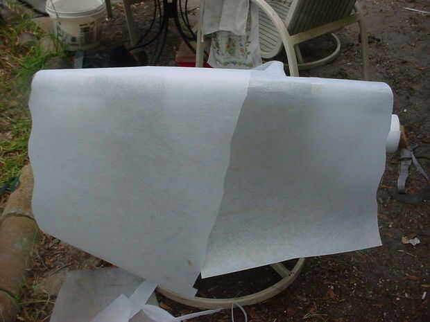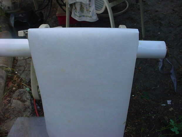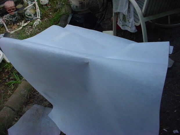 De las banderas desenrolla aproximadamente 7' pies del material, no medirlo pero alrededor de 4' de ancho, doblé por la mitad longitudinal y luego en la mitad longitudinal otra vez, entonces hacer una obtención reducir la longitud del lado con 3 capas, esto le da 2 banners casi idéntica