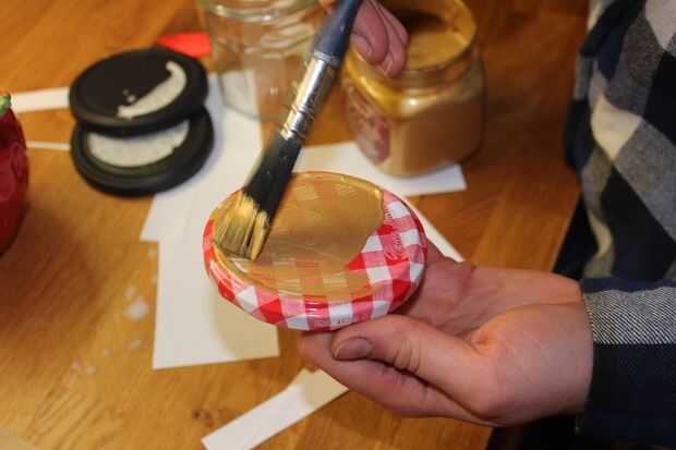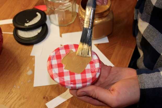 Opcional: Si desea dar esto como regalo, me gusta guardar todos mis frascos de oliva y mermelada, la etiqueta y limpiarlos para usar como recipientes. Pintar las tapas con un poco de oro la pintura (pintura en aerosol, acrílico, brillo-lo que tienes en mano), agregar una bonita etiqueta y tienes un don excelente, hecho a mano!