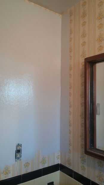 Luego pinté las paredes. Para esto usé también un 3/4 en rodillo de siesta pero utiliza un cuatro en rodillo, esto fue los puntos más por encima de la puerta y la ducha. Luego cortar todo con un cepillo, luego deje que se seque.