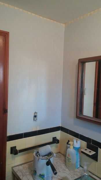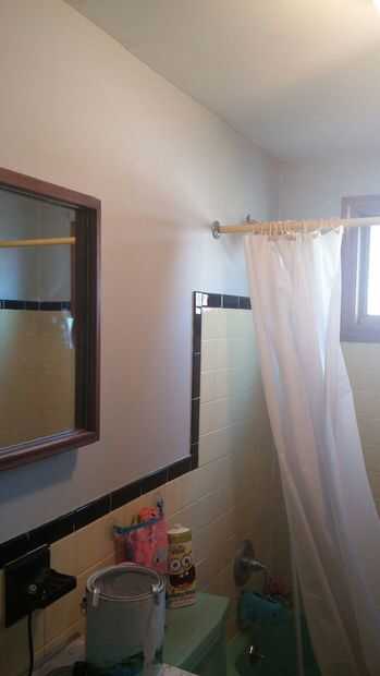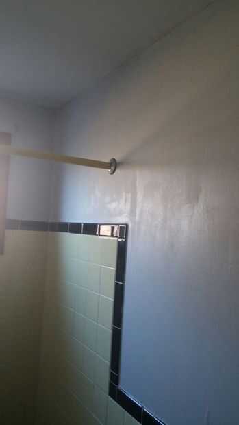 he pintado el techo y las paredes con una segunda capa. Realmente no tengo que, pero pensé así podría dar el paso extra y que se vea algo agradable. Yo deje que se seque y colgaron las cortinas de ducha respaldo de tomas de enchufe y somos buenos ir.