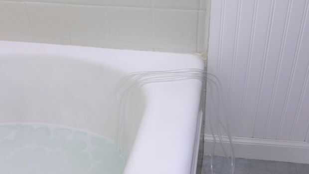 Ahora ejecute todos los tubos en la tina. Usted puede apenas puso en libremente. Pero si usted quiere mantener en su lugar sólo puede establecer una botella de champú pesado en los tubos.