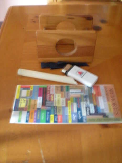 sostenedor de la servilleta, velas, encendedor, pegatinas, pedazo de cinta.