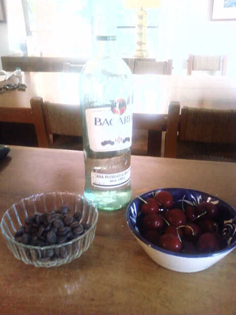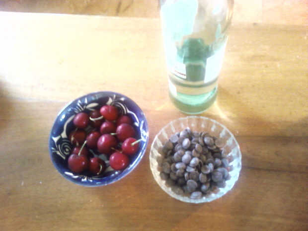 Una botella de ron blanco (la mitad de las cerezas la mitad de la cocción)