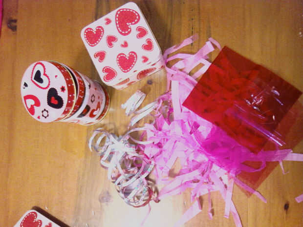 Papel celofán en color rosa y rojo, cortar en cuadrados de 3" por cada lado.
