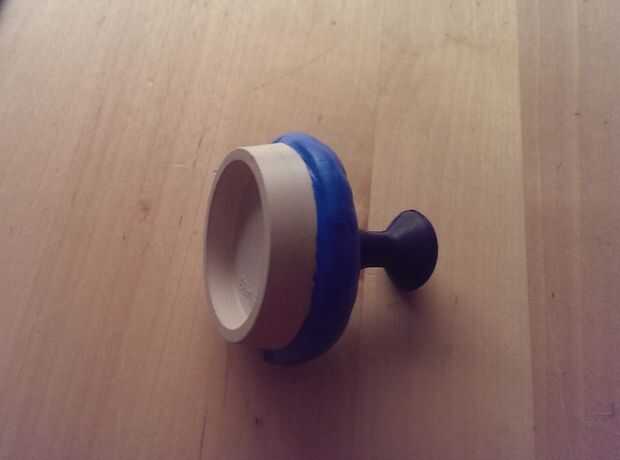 Trabajé el Sugru en mis manos para ablandar antes de rodar en forma de salchicha y usando este embutido como una junta alrededor del borde superior de la clavija. El gancho de la pared / perilla fue colocada en la parte superior. Los bordes Sugru se suavizan con el calor de mis dedos solamente, y la pieza quedó toda la noche en el alféizar para curar.