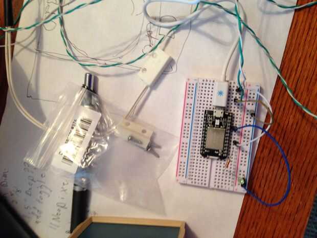 Sensor de la puerta se unirá a la puerta del baño. Es muy sencillo, simplemente un interruptor. Utiliza un interruptor del sensor reed para detectar estado de abrir y cerrar la puerta. Cuando un imán está cerca del interruptor, se cierra, de lo contrario, es abierto. Usted probablemente ha visto estas.