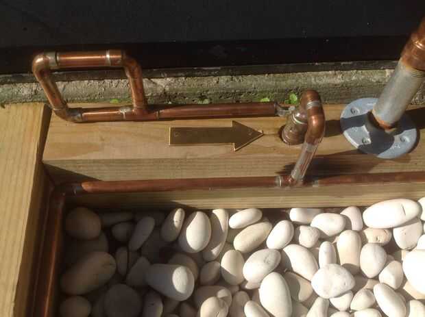 Si no sudas cobre puede utilizar PVC. Mi primer intento en este estaba usando PVC. Funcionó muy bien pero igual no les gustó el look. Recórtalo y me había hecho este anillo de cobre. También hice el anillo muy apretado así que no necesitaba ningún tipo de suspensión de la tubería. Pensamiento parecía mejor esta manera